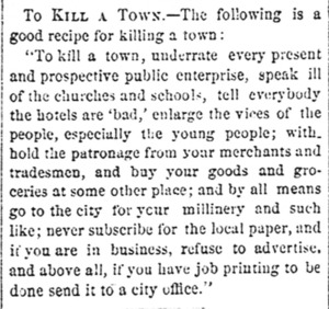 Where the two forms intersect is in their ability to support social commentary. While the published cookbook is much more likely to offer commentary on what is respectable and appropriate in the home, with some exceptions such as The Woman Suffrage Cook Book (1886). Even the names of dishes—Election Cake, Lincoln Cake, etc.—point to a patriotic undertone. Recipe-adjacent texts, however, push social commentary outside of the home and towards larger, national politics. In Figure 8, the recipe “To Kill a Town” adopts a tone that is both teasing and authoritative. The recipe describes how towns are destroyed, including steps such as driving business away to big cities and indulging the vices of young people. The instructions provided include: “underrate every present and prospective public enterprise,” “withhold the patronage from your merchants and tradesmen,” and “if you have job printing to be done, send it to a city office.” Although the recipe is playfully written, the specificity of the instructions indicates real concern over the death of small towns, a phenomenon particularly pertinent to middle- and working-class people at this moment in the period. The commentary in this recipe could even be connected to broader concerns among the public regarding mass-industrialization. In any case, the clear purpose of the recipe to kill a town is to express dissent and civil unrest rather than represent the stability and control that recipes in published books often do.