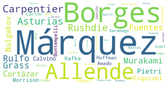 Going through the data, we find that the standard approach that most entries adopt is to highlight the connections of magic realism to Latin American literature (see Figures 2 and 3). Most pages refer to Gabriel García Márquez as its leading exponent—and, more, in particular, One Hundred Years of Solitude. They also frequently refer to the authors identified with the understanding of magic realism as a broader genre present in the postcolonial context or the Global South—most of all to Salman Rushdie and, to a lesser degree, Toni Morrison and Ben Okri. On many occasions, they point to the roots of magic realism—citing the origins of the term within visual arts, and enumerating authors that are at times considered by scholars to be predecessors of the movement (but whom the Wikipedia articles most often plainly identify as magic realists), such as Jorge Luis Borges, Mikhail Bulgakov, and Ernst Jünger. Frequently, we find references to authors that qualify among the writers of magic realism under the broad umbrella of the genre understood as a set of universal—and in this case somewhat ambiguous—aesthetic practices: for instance, Franz Kafka, Haruki Murakami, Günter Grass, and Milan Kundera.