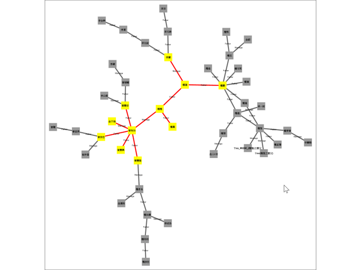 Although Gephi and Cytoscape made it possible to “discover” the giant component among Chosŏn examination candidates linked by agnatic and affinal ties, these tools have proven unwieldy as effective historical macroscopes. Their limitations become apparent in their inability to implement Bagby’s proposed shallow depth of field or Graham, Milligan, and Weingart’s data abstractions. Gephi’s capabilities are largely restricted to static network visualizations and statistical summaries of various centrality metrics, which provide little analytical value for genealogical datasets that do not conform to scale-free typologies, as genealogies are inherently tree structures. While Cytoscape allows for adjacent selection of specific nodes and edges and enables the extraction of subnetworks through filtering, its capacity to integrate and cross-reference multiple sources remains inadequate (Figure 12). The persistent challenges of volume and heterogeneity, which have affected digital Korean studies since the Munkwa Project, demand a more adaptable methodological approach.
