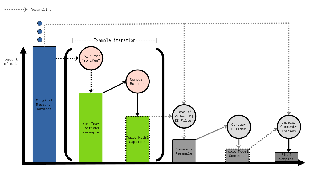 In the context of our overarching research project, this example of resampling provided valuable means to validly minimize the amount of data without losing a qualitative trajectory of the process itself. Defining and tracing relevant video content in our original data set enabled us to find related comments and textual conversations among YT users in the comment sections below the videos.