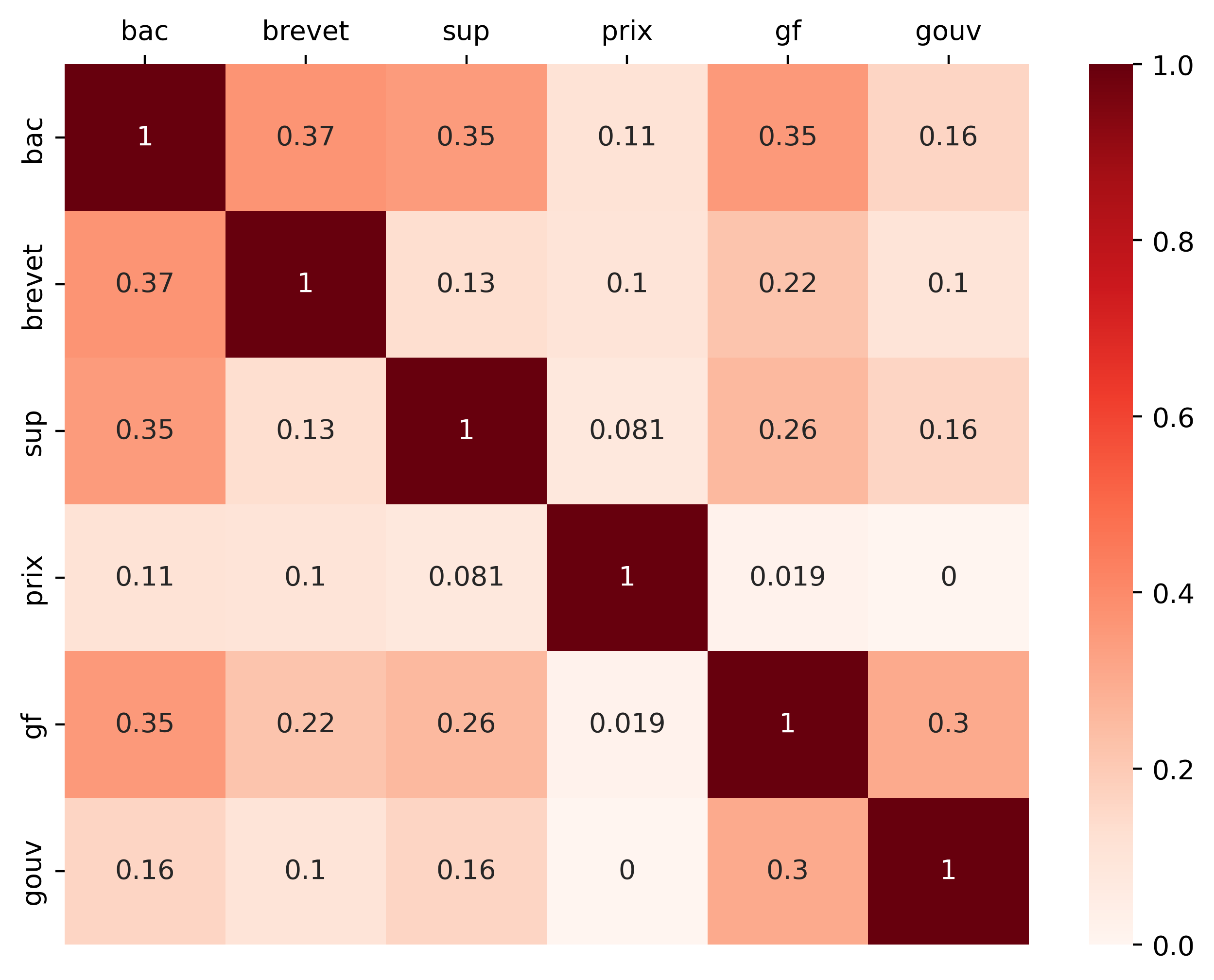 We calculated the cosine similarity between our canonical lists to assess their level of coherence. The heatmap of the results can be seen in Figure 1. It shows that the lists are far from being identical, even if there are certain similarities in the three school-based factors (brevet, bac, sup). It is interesting to note that the Garnier-Flammarion list (gf) is also close to the school-based factors, presumably because this collection, which includes a critical apparatus, is designed to be used by the school system. The literary awards list (prix) is very different from the other canonical factors. While the relevance of this list in the canon is debatable, we decided to keep it because it enables us to capture a more contemporary canon than the one captured by our school canon.