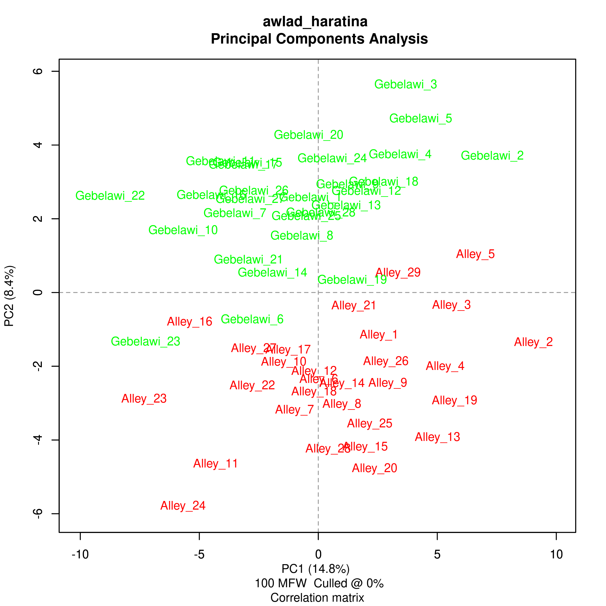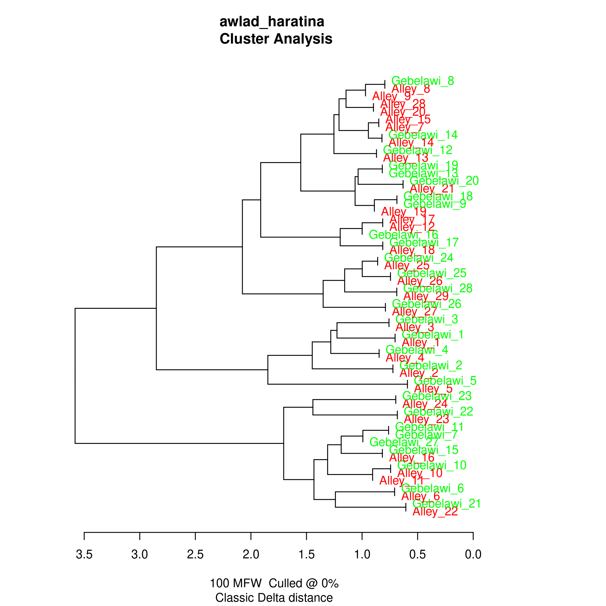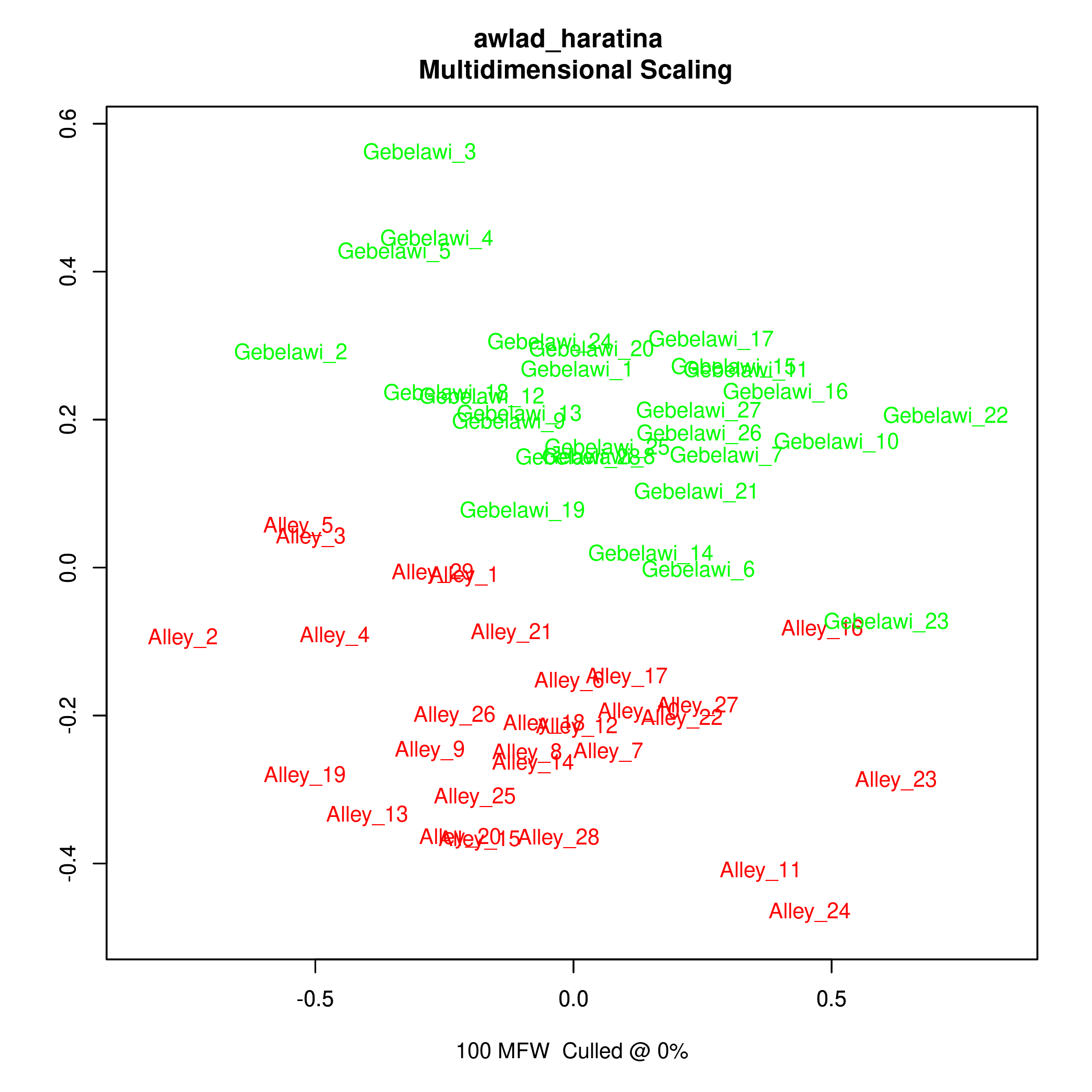 | No. of words | Gebelawi | Alley | ||