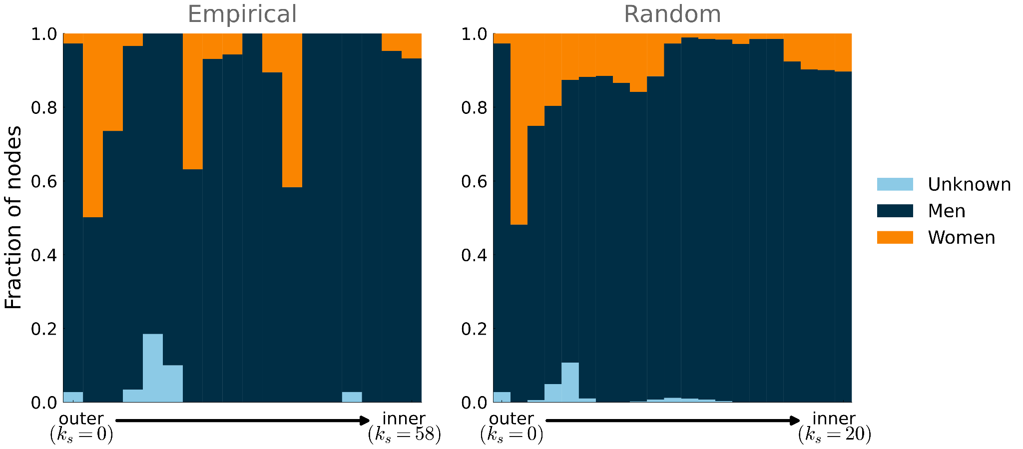 - This procedure ensures that the sum of the fractions of men, women, and unknown nodes of a given k-shell is always equal to one. ⮭
